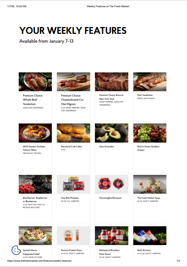 Get a head start on next week’s Fresh Market deals with the weekly ad preview. See upcoming sales, new products, and limited-time offers before they go live. Planning ahead helps you shop smarter, save more, and make sure you don’t miss any short-term deals.